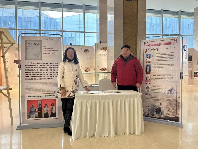 当天上午,博物馆广场人潮涌动,博物馆一楼展厅固定展台展示了绵阳中医药历史文化、历代名医和医学著述、中医药历史文物及道地特色中药材等。我校离退休教师金虹教授主编的《中医药文化故事(汉英双语)》一书于2023年08月由四川科学技术出版社出版发行,该书作为高校医学著述的代表,在此次活动中与其他相关图书一起集中亮相。