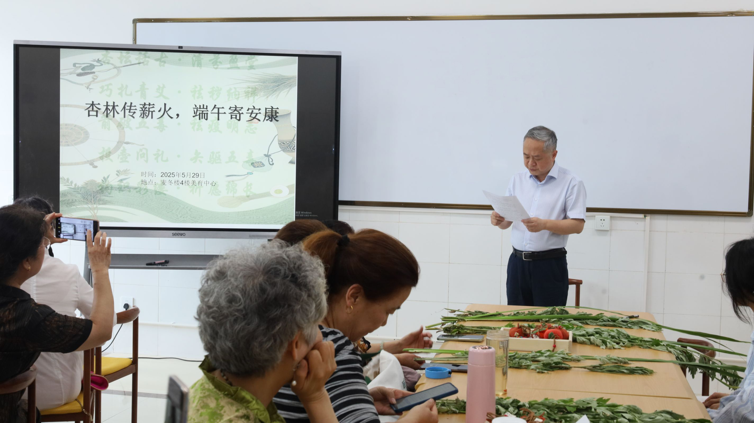 为传承中华优秀传统文化,弘扬中医国粹,丰富师生校园文化生活,在端午节即将来临之际,2025年5月29日下午学校举办了“杏林传薪火·端午寄安康”的主题活动。我校关工委“五老”代表、附属医院(绵阳市中医院)离退休老同志代表共计20余人参加了本次活动。