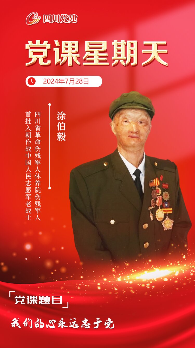 涂伯毅,四川省革命伤残军人休养院伤残军人、首批入朝作战中国人民志愿军老战士,曾获“全国模范退役军人”“最美拥军人物”“四川省优秀退役军人”“四川省自强模范”等荣誉称号。